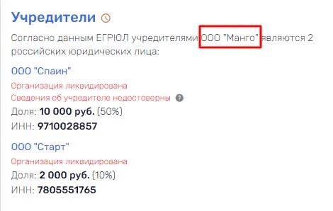 Учредителями ООО «Манго», не имеющего финансовых показателей, были ликвидированные ООО «Спаин» и ООО «Старт».