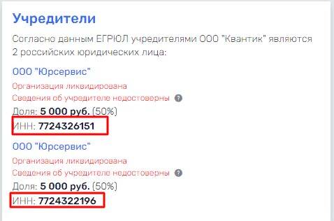 Вместе с ООО «Гранд» соучредителем ООО «Альтаир» выступает ООО «Квантик», учрежденное двумя ООО «Юрсервис», имеющими разный ИНН.