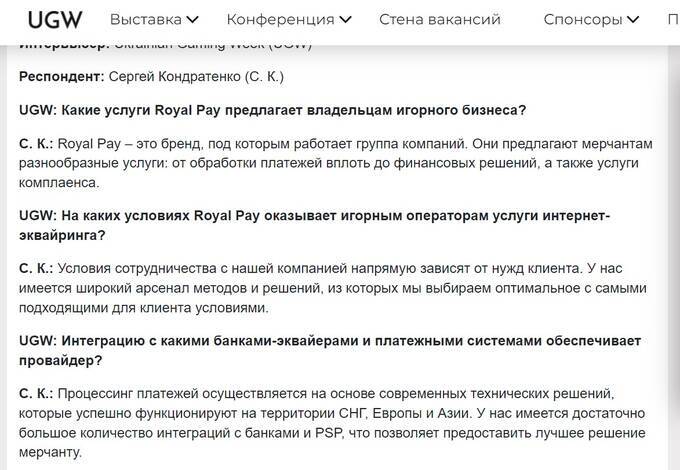 Сергей Кондратенко и его компания Royal Pay появились в Украине сразу после легализации азартных игр – Royal Pay, в первую очередь, сосредоточена на электронных платежах, которые пользуются высоким спросом в онлайн-игровой сфере.