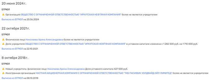 А вот с лета 2022 года, т.е. с начала СВО, и по 2024 годы из ООО «Инк-Нефтегазгеология» «пропал» и офшор, и Николаева, и само ООО «ИНК». Возможно, данные о них просто скрыли.