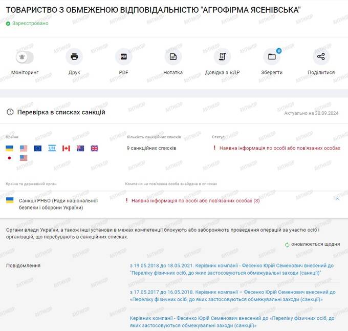 Коваленко, Клименко, Воробьев и Тиманова связаны между собой еще несколькими фирмами: ООО ГОФ «Антрацит», ООО «Христофоруголь», ООО «Агрофирма Ясеновская». Последняя, хоть и содержит в названии сочетание «агро», но занимается отнюдь не сельским хозяйством. Она торгует углем, а один из ее учредителей – Юрий Семенович Фесенко находился в списке подсанкционных лиц Совета национальной безопасности и обороны Украины с 2017 по 2021 год.