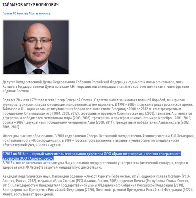Артур Таймазов - тоже известный спортсмен, борец, неоднократный победитель Олимпийских игр. Только выступал он там почему-то под флагом Узбекистана - видимо, спортивная слава бывшей советской республики оказалась ему дороже родной России. Но дело в другом. У Артура Таймазова, который в первый год депутатства заработал скромные 5 млн рублей, оказалась очень успешная жена - Зарина Илуридзе. Он развелся с ней в 2018 году, а уже в 2019 году, как утверждают в Сети, она якобы купила себе несколько шикарных квартир в центре Москвы.