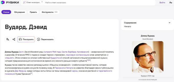 Некоторое время назад редактор с ником Grnrchst обратил внимание на любопытную аномалию среди статей, которые присутствуют в наибольшем количестве языковых разделов. Обычно они посвящены государствам (про США, Россию и Китай написано более чем в 300 языковых разделах) или общеизвестным понятиям (в более чем 200 разделах можно найти статьи «кот» и «собака»). Но каким-то образом в этом списке оказался американский композитор Дэвид Вудард: о нём написали в 335 разделах, включая совсем уж экзотические языки вроде рунди или эстремадурского.