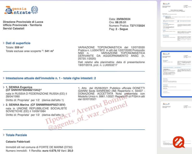 И этот подарок нельзя назвать случайным - в сентябре 2021 года Сенин впервые стал депутатом Госдумы, при этом в предвыборной декларации никакой итальянской недвижимости нет. Сенин решил скрыть свои итальянские активы и передал права на дом своим дочерям всего за 3 месяца до дня голосования.