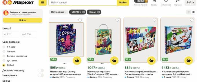 Однако игры Сивака все еще можно заказать на “Яндекс Маркете”. Речь идет о новых играх 2025 года выпуска. Бренд Strateg продолжает выпускать русскоязычные игрушки.