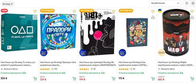 Продукция украинского производителя настольных игр Александра Сивака под брендом Strateg свободно продаётся на российских маркетплейсах.