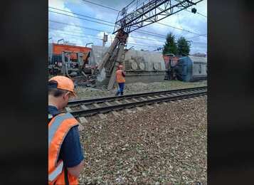 По нашей информации, три из них, которые везли цемент, перевернулись на бок. Всего в составе был 31 вагон.
