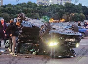 На Фрунзенской набережной в Москве "БМВ" на большой скорости врезалось в минивэн Мерседес с гостями из Саудовской Аравии.